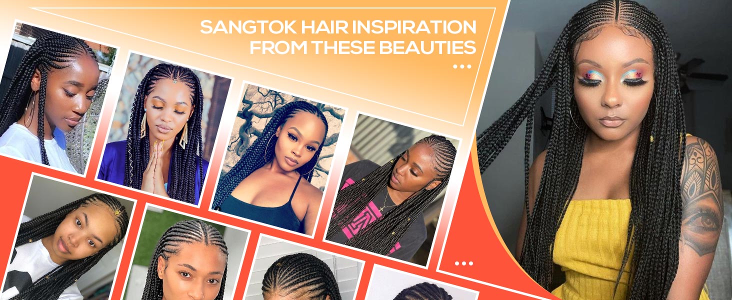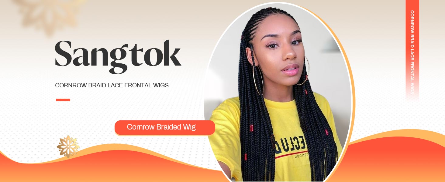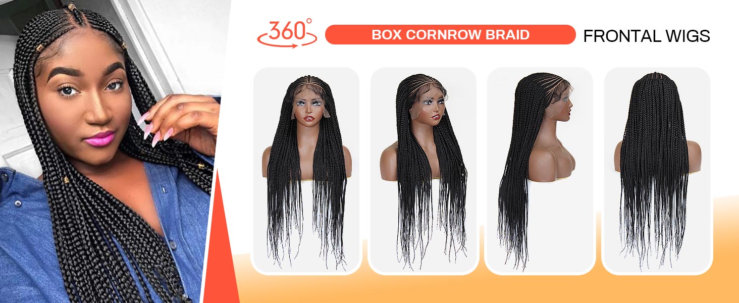 13X8 Lace 36 Inch Front Cornrow Braided Wigs for Black Women Cornrow Box Braid Wigs with Baby Hair Black Lightweight Synthetic Natural Deep Side Parting Lace Frontal Box Braided Wig