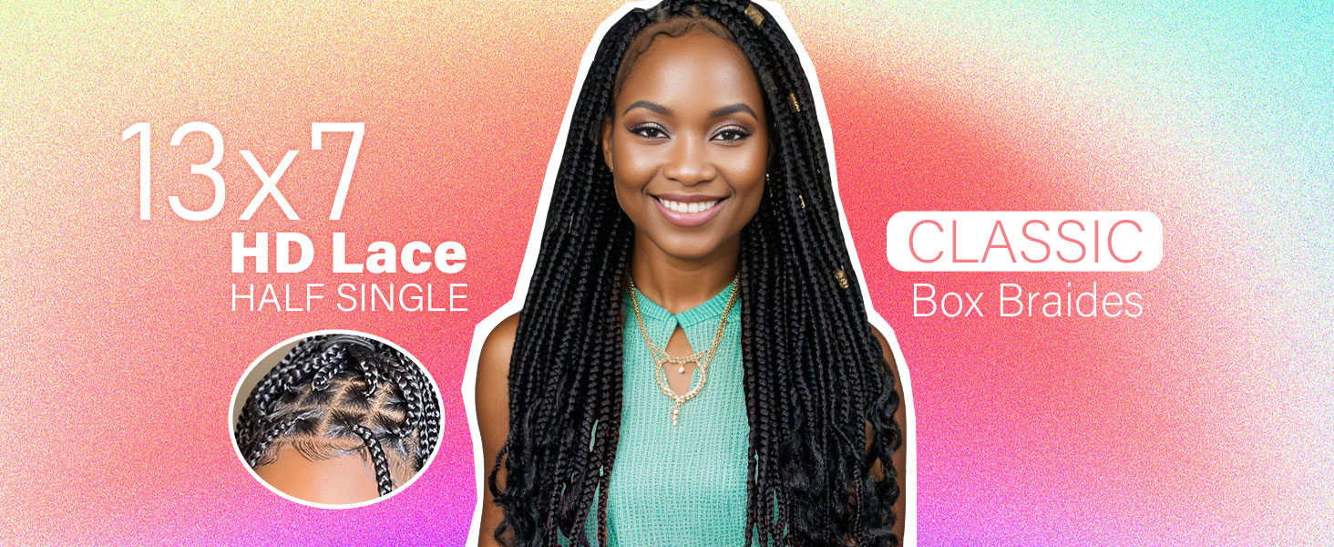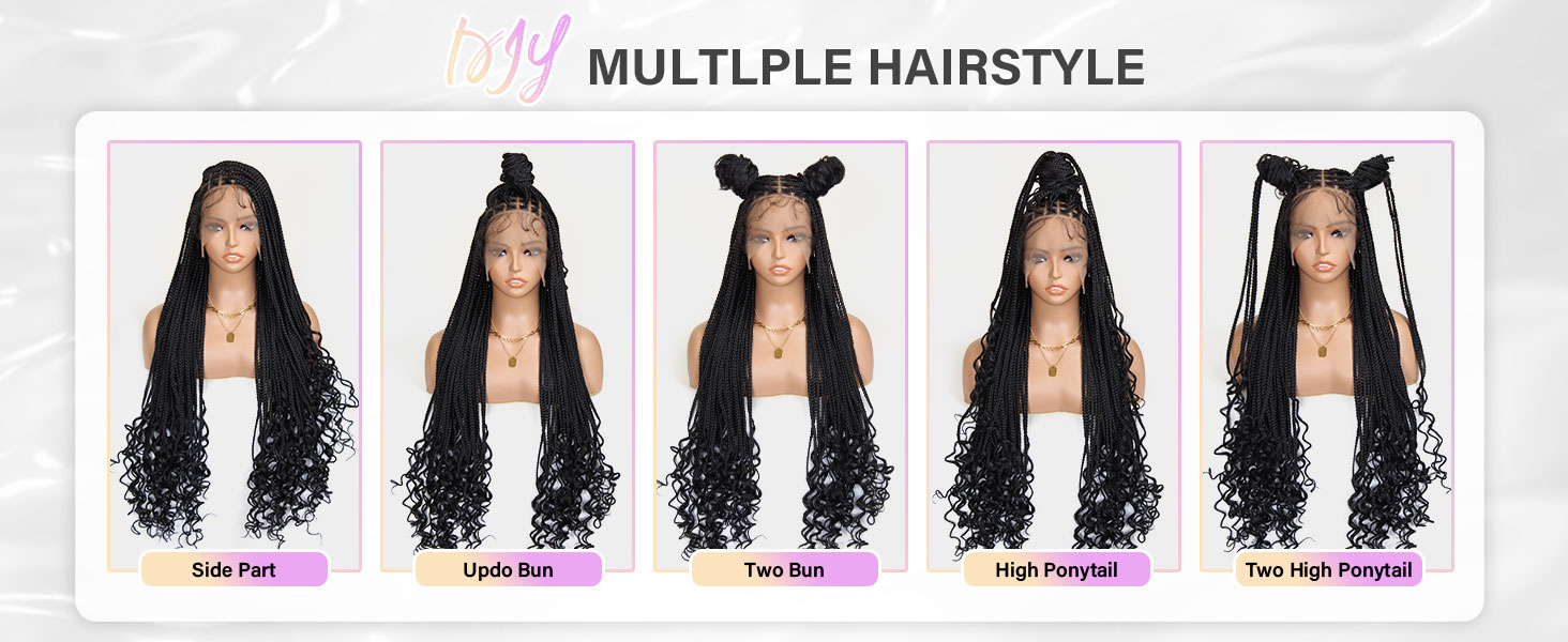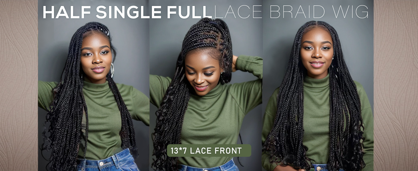36 Inch Braided Wigs With Curly Ends, 360 Single Full Lace French Curl Braided Wigs for Black Women Knotless Box Braid Wig with Baby's Hair